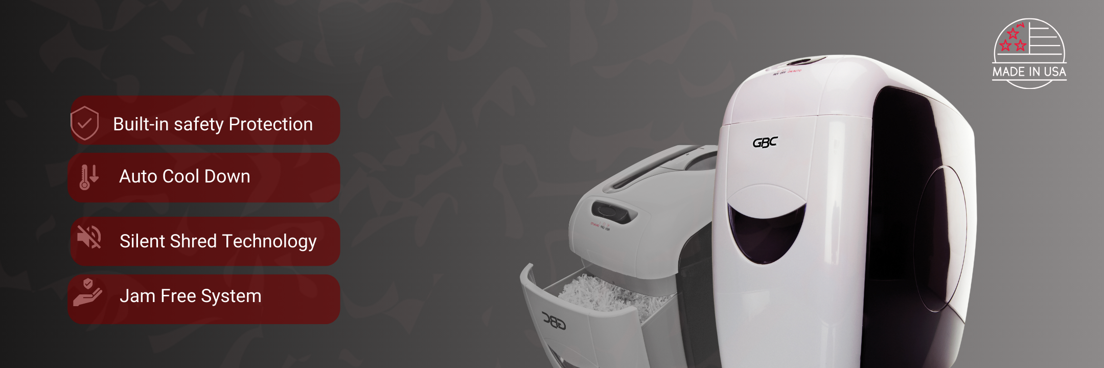 We understand the importance of safeguarding your sensitive documents. That's why our versatile GBC shredders are designed to securely dispose of a variety of materials, meeting the demands of both home and office environments. Blending efficiency with robust security, our products stand out for their innovative, user-friendly, and environmentally conscious designs. Choose GBC for a comprehensive solution to protect all your sensitive information.